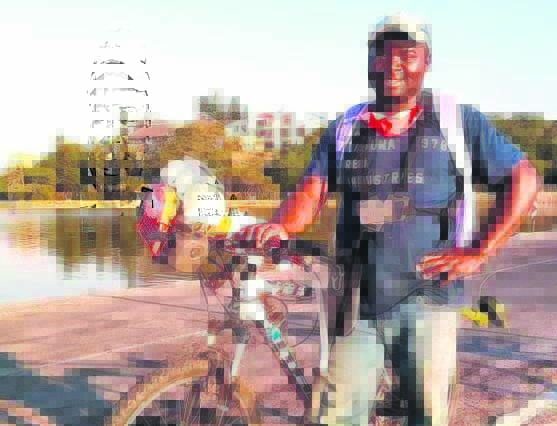 A dapper man drew attention on social media when he offered his garden services riding his bicycle and hauling a weed-eater.