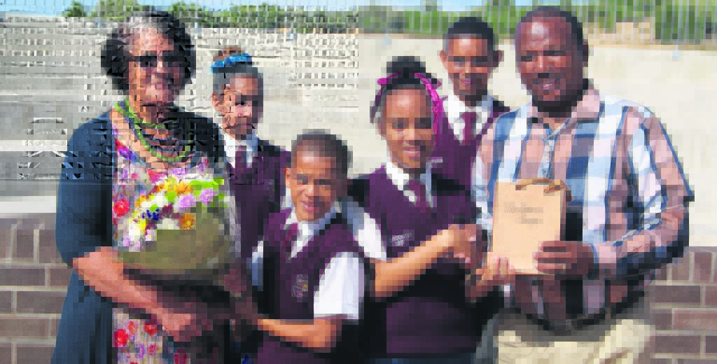 Sea Vista Primary School in St Francis Bay bid farewell to two of their long serving teachers who retired: (left) Daline Felix (10 years) and (right) Mentoor Leander (13 years. Each of these veterans has clocked up 36 years of teaching experience and their contribution to the school over the years, both academically and in extra mural activities, is going to be sorely missed. Pictured with them are (front from left) Berven Titus (head boy), Brigette Davids (head girl), (back), Shamima Yousuf (deputy head girl) and Devandré George (deputy head boy). Photo:LYN AITKEN