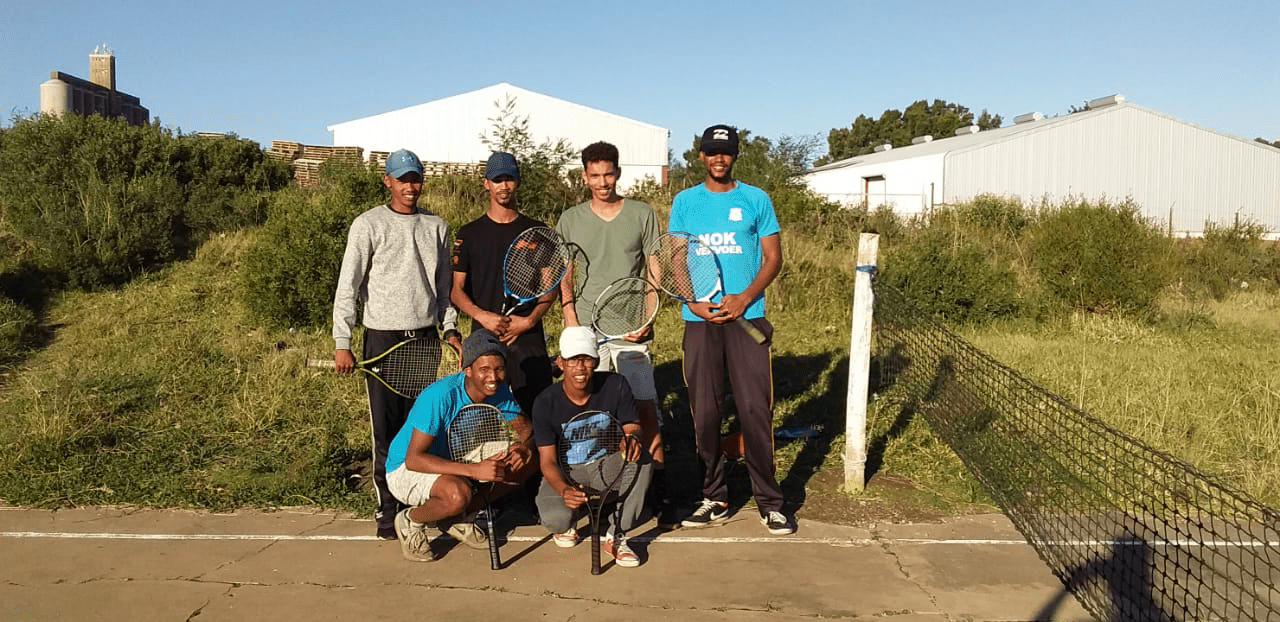 A tennis enthusiast, Eldoraan Williams (right) and his friends – Sammy Rollison, Anul Leander and Elmo Swarts – from Humansdorp plan to establish a club for the youth in their area where they can learn about and master the sport. Photo: Supplied