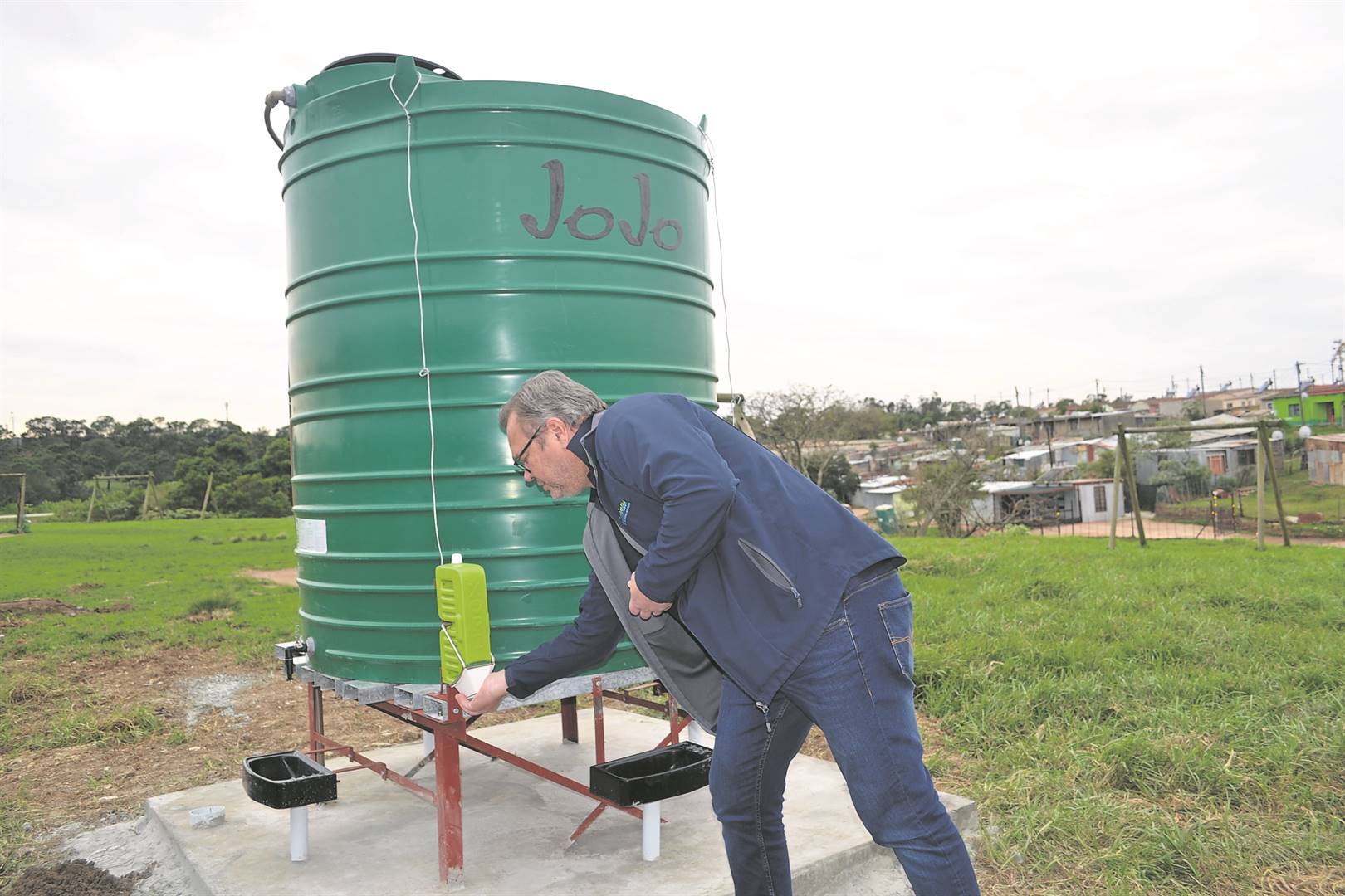 In addition to the installation of the water-saving flush systems, the Trust has also installed a minimum of three Jojo tanks at the two schools, which will be used as a low water usage washing station for the learners.