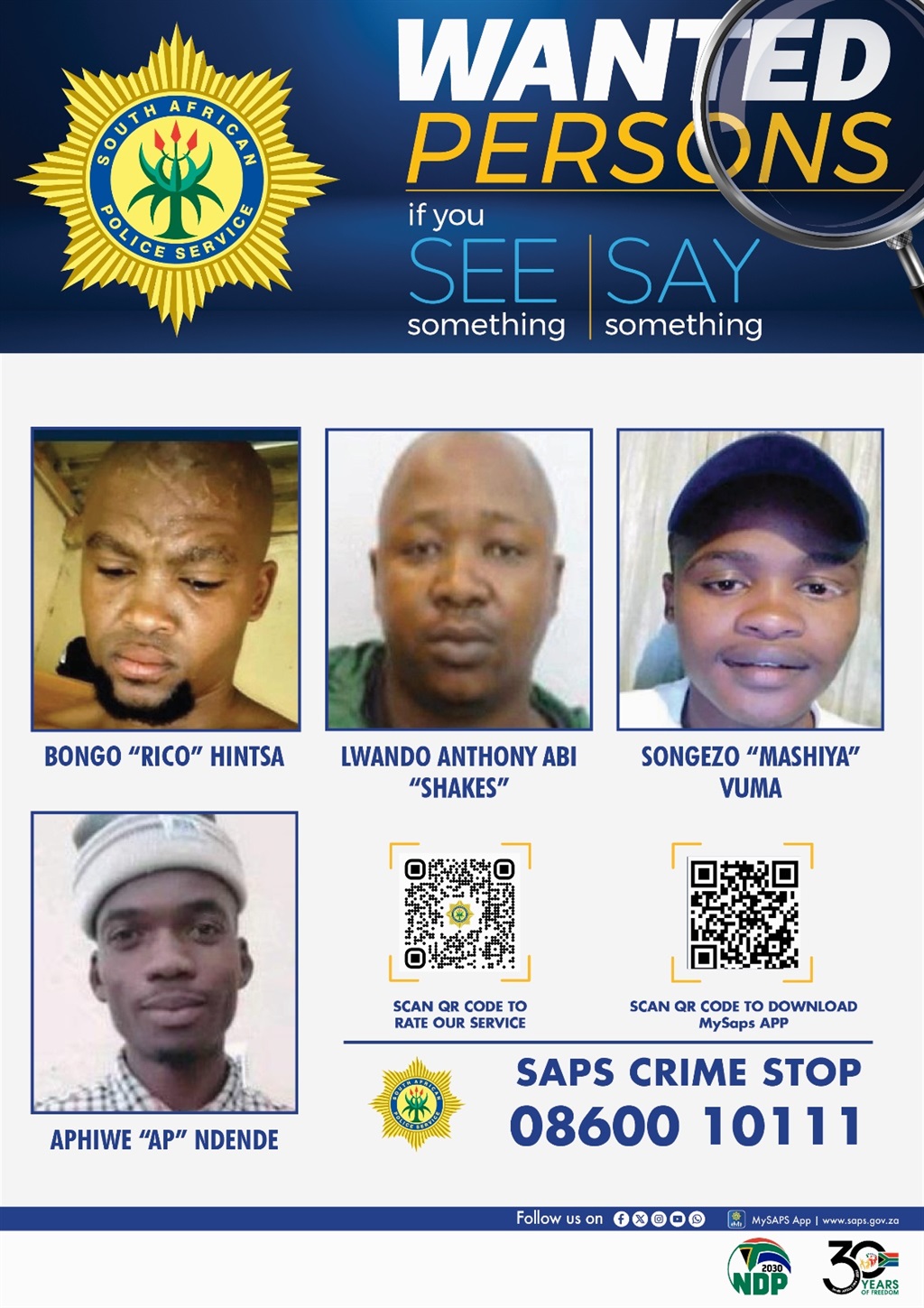He added: “To those who shared the pictures of these suspects on social media, to all the journalists and media houses that played their watchdog role, we are indebted to you. This is what the SAPS can achieve when the whole country rallies behind our men and women in blue. We thank you, South Africa, for assisting us in stamping the authority of the state.”