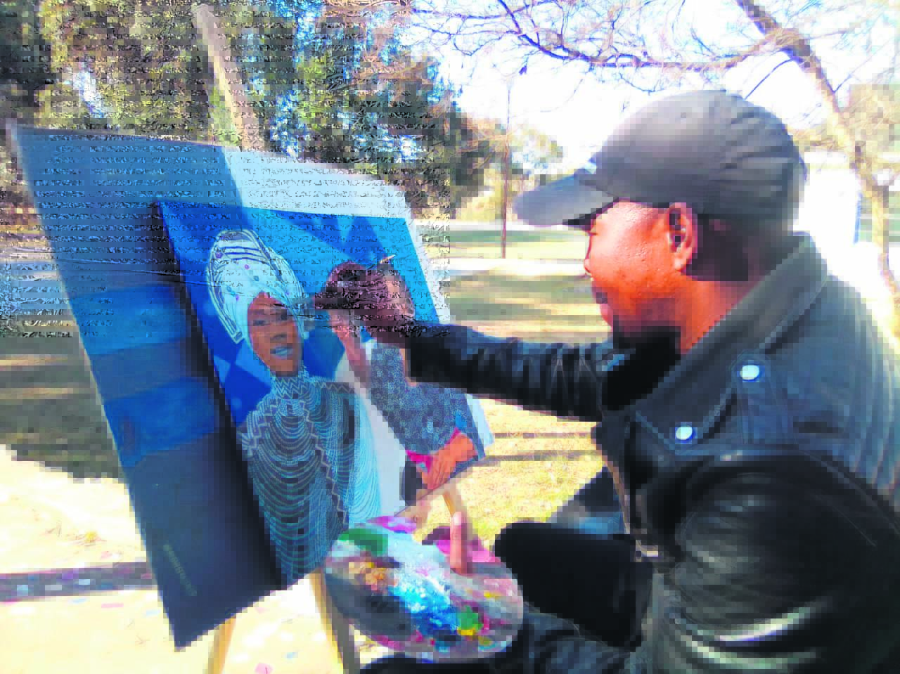 Nangamso Mgwetyana busy painting the portrait of former news anchor from SABC, Noxolo Grootboom.