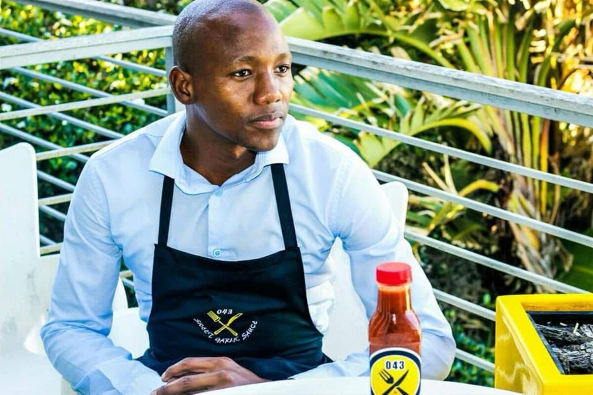 In 2017, he was selling hotdogs and sausage rolls outside a tshisa-nyama, looking for something to make his food stand out. He started experimenting, trying out new recipes and creating exotic sauce flavors, and his sauce manufacturing business, 043, was launched.