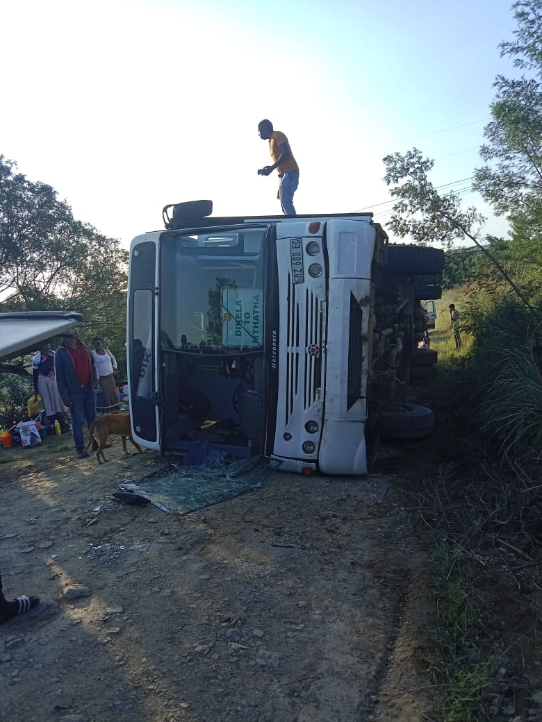“The bus from AB350 company (Marcopolo) was travelling from Mthatha to various villages in Libode, dropping off shoppers and travellers. The driver lost control when the bus lost power while driving uphill, it reversed out of control and overturned,” Binqose said.