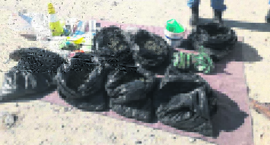 Since the commencement of Covid-19 duties, the police have been working tirelessly to enforce the regulations and having great success in terms of those who are not following the law. On Sunday, 9 August, members of A-shift under the command of Lt Colonel George Jafta together with SANDF members performed stop and search blockades on the N14 Road between Upington and Olifantshoek. Members randomly checked for illegal items and valid driving documents. Upon search of one of the vehicles, the police requested the driver to produce his driver’s licence. While waiting for the driver to take out his licence, a strong smell of dagga led the police to search the vehicle thoroughly. Two male suspects aged between 28 and 34 were detained at Upington police cells and will this week appear before the court Here is the dagga to the value of R98 546, including six packs of RG cigarettes that was found. Photo: Supplied