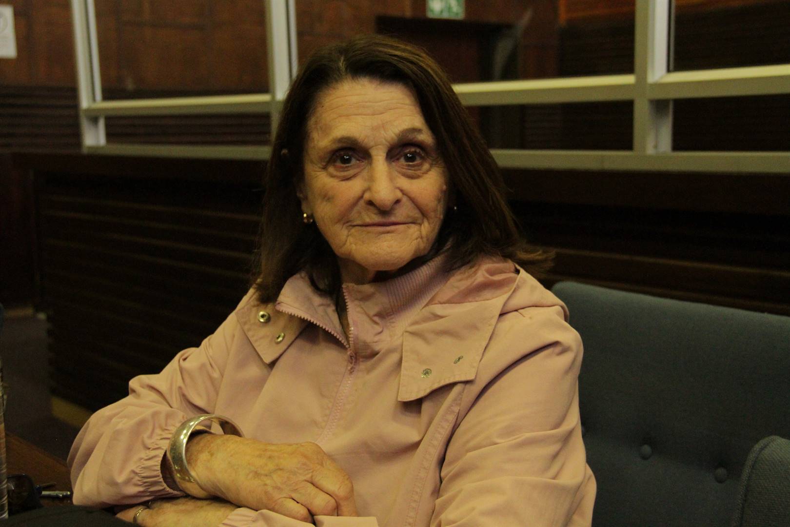 Brenda Booth in die hofsaal.