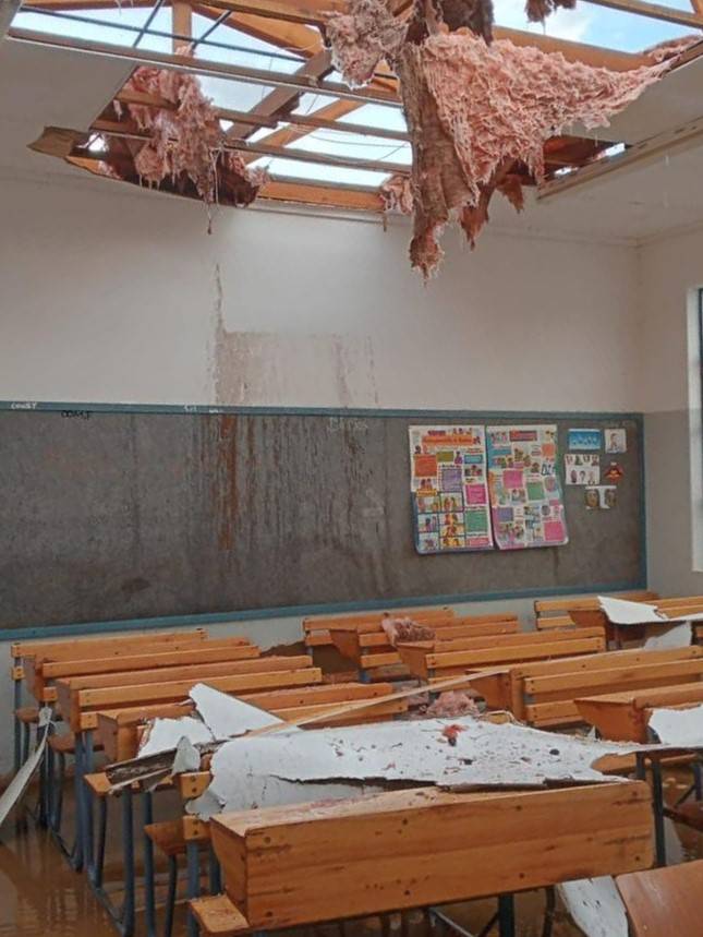 Die storm het glo oor die hele dorp gewoed, en minstens ses klaskamers van die skool is beskadig. Groot dele van die skool se dak is onder meer afgeruk.