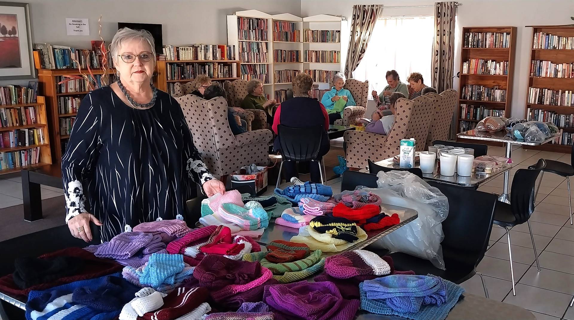 “Ons skerts, lag en huil saam,” vertel Ina Wilmans, sameroeper. Sy het die groep by Noekie van der Westhuizen oorgeneem, wat dit jare lank gelei het. Die groep bestaan uit 15 vrywilligers, waarvan tot tien op ’n slag vergader. Die ander lede brei tuis.
