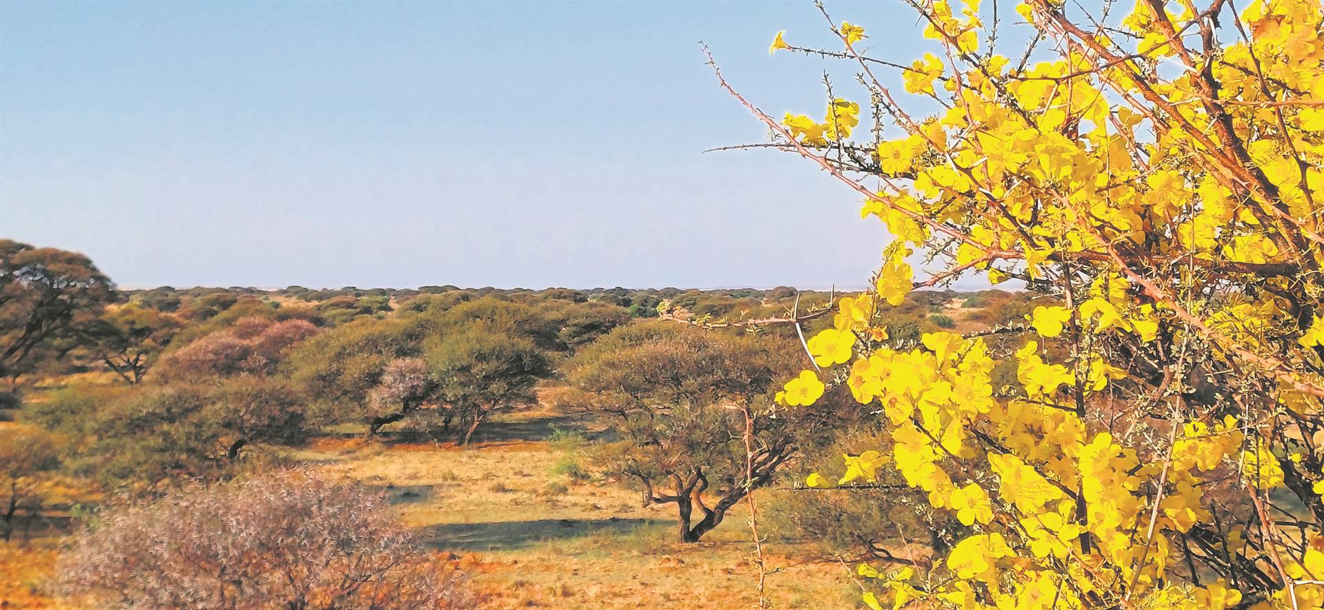 Ná die eerste lentereën lewer die andersins onopvallende wildegranaat, Karoo-goud of kortdoringgranaat (Rhigozum brevispinosum) ’n skouspelagtige vertoon van goudgeel trompetagtige blomme. Die Otjiherero naam vir die wildegranaat, “omuporapingo”, beteken “makes the heart jump with happiness,” wat ’n verwysing na die treffende blommeprag is, aldus namibian.com.na. Die struik, wat in sekere streke tot 3 m hoog groei, is tuis in droë bos- of rotsagtige gebiede. Wild vreet graag aan die nuwe takkies en blare, en by die Rooifonteinwildsplaas buite Kimberley wil dit voorkom of die struik geneig is om tussen die takke van ander bome te groei, wat beskerming aan die struik bied.