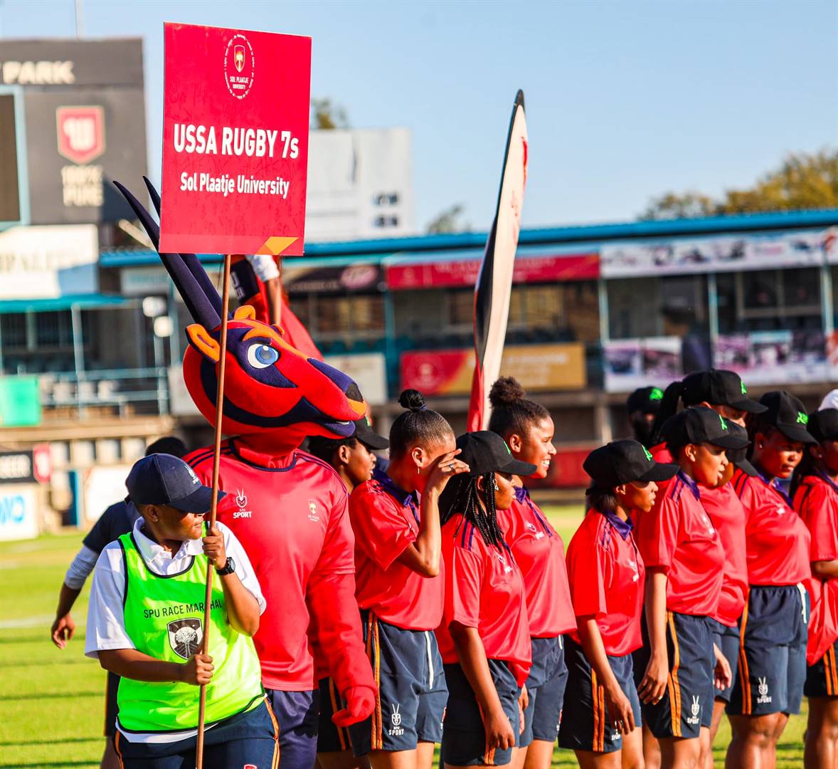 The women rugby team of the Sol Plaatje University during the opening ceremony.