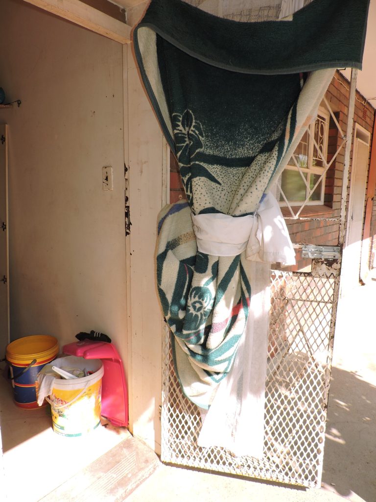Inwoners van diรฉ woonstel sรช hulle weet nie meer waar en hoe om te slaap nie, want daar is nie ‘n vertrek waarvan die dak geweldig lek nie. Boonop moet hulle met ‘n geblokte drein, wat in hul tuin uitvloei, saamleef. Met NoordkaapBulletin se besoek was diรฉ verstopping reeds meer as drie weke gelede aangemeld.