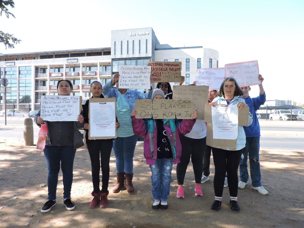 “Die Noord-Kaap en Kimberley was die skoonste, mooiste plek. Kyk hoe lyk dit nou,” sê ‘n vrou wat deel van die groep was. Terwyl sy dit sê, wys sy na ‘n stroom rioolwater wat uit ‘n mangat skuins oorkant die pad van die premier se kantoor vloei, en enkele meters weg van ‘n wegneemete-restaurant. Dié rioolwater, kan inwoners getuig, oorstroom reeds ‘n geruime tyd.