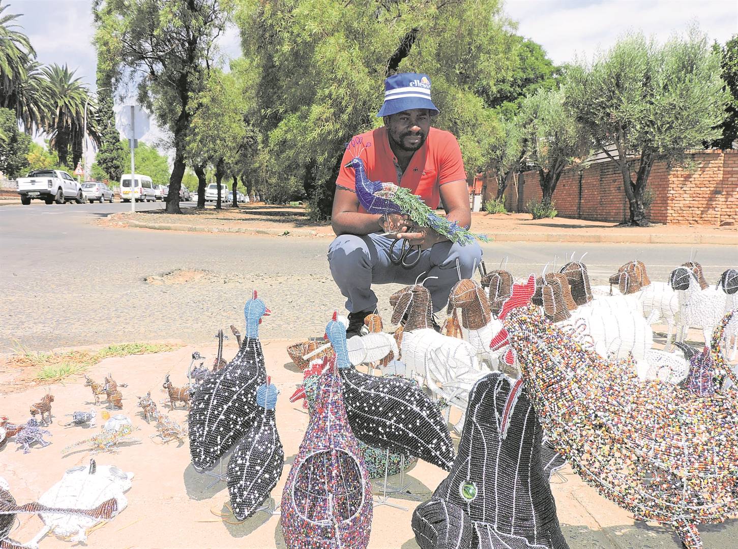 For approximately ten years now, Delon Morosi has been selling his works of art made from beads and wire in Kimberley. For Morosi beadwork is a “family thing”. He says his mother started with beadwork on doilies many years ago. The most popular beadwork items he sells are those of the hoopoe bird, boerbok, sheep and the protea. He also does work on order. On Saturday mornings Morosi and his work can be found on the corner of Synagogue and Memorial Road, and on Sundays on the corner of Gerrit Schouten Way and MacDougall Drive.Photo: Helena Barnard