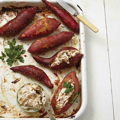 This recipe outlines how to make creamy mashed potatoes by mashing boiled potatoes with butter, cream, cheese, and seasonings, then baking them for a golden finish.
