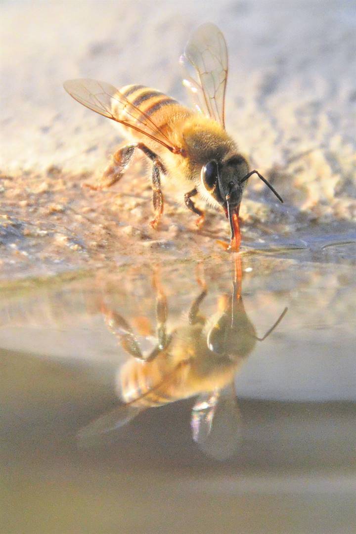 “Met die hitte wat hier is, het die bye aanmekaar by die voëls se waterbak kom water drink,” laat weet Nalene Nel. Die immer besige bye speel ’n geweldig belangrike rol in die wêreld se biodiversiteit en voedsel­sekerheid. Volgens ’n artikel in Arena, ’n publikasie van die landbou-maatskappy NWK, is bye die belangrikste groep bestuiwers omdat hulle meer as 90% van die 107 vernaamste gewassoorte bestuif. Meer as 50 gewasse in Suid-Afrika is van bye vir bestuiwing afhanklik. Sonder hul rol kan gewasse en ander eetbare plantprodukte nie bestuif word nie, en daarom geen voedsel lewer nie. Bye dra só indirek tot werkskepping by. Bye lewer ook ander produkte wat daagliks in gebruik is. Heuning is die bekendste, met byewas wat onder meer in skoonheidsmiddels, kerse en politoer gebruik word. Propolis, ’n harsagtige stof, word vir die behandeling van sekere siektetoestande aangewend. Mense word versoek om water vir bye uit te sit en blomme te plant wat bye lok. Waar ’n byeswerm ’n bedreiging inhou, moet ’n kundige se hulp ingewin word.