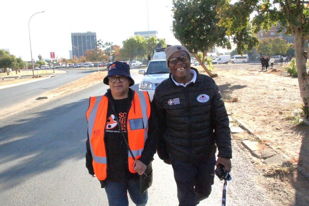 Fredalene Booysen van Sonke Gender Justice en Thapelo Mookwa, direkteur Bathopele, is van die organiseerders wat die optog teen geslagsgebaseerde geweld en vrouemoord gereël het. Foto: Charné Kemp Credit: Charne Kemp