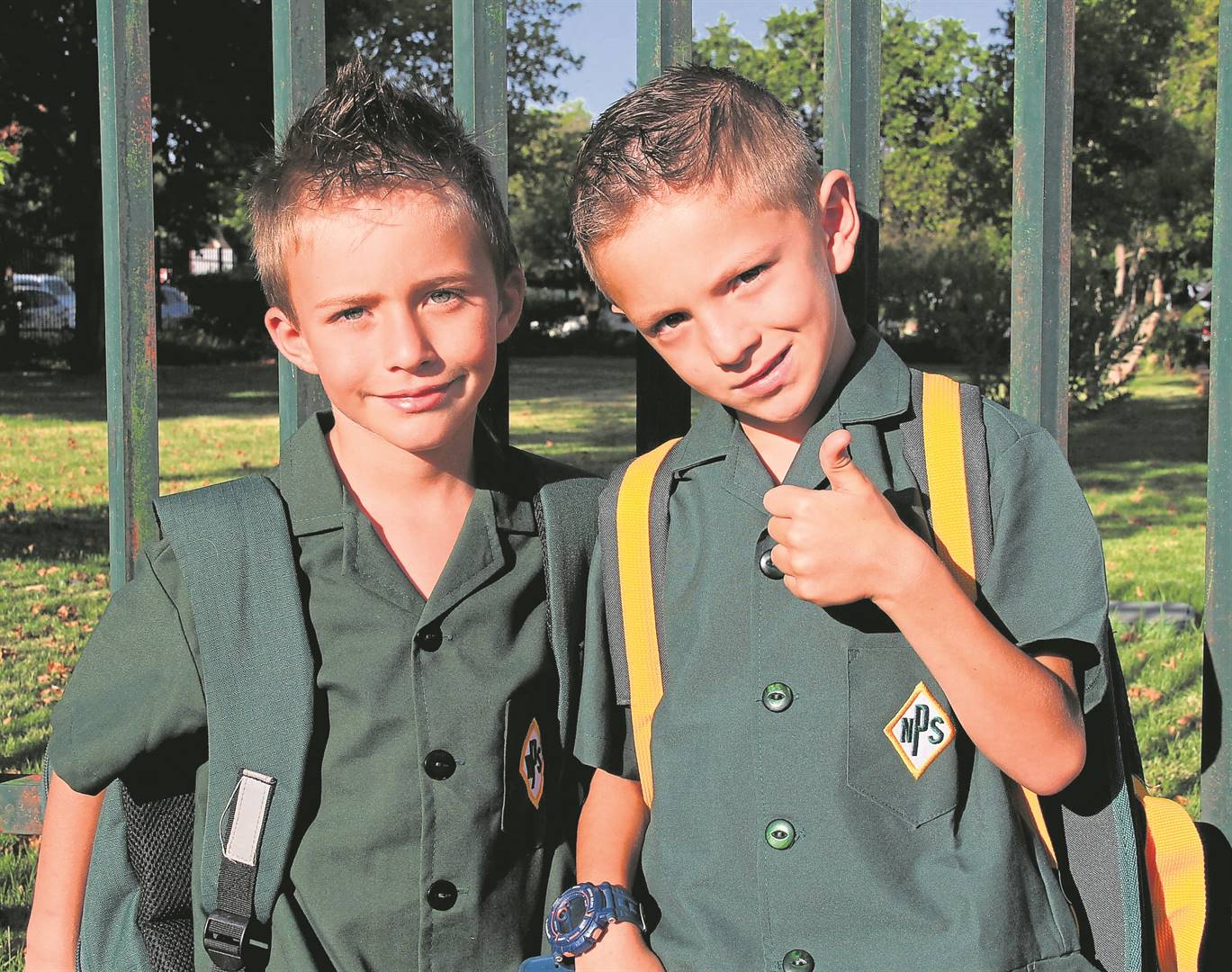 Links: Dehan Potgieter (links) en JC Kruger, wat beste maats is en langs mekaar in die klas sit, is opgewonde om hul skoolloopbaan aan die Laerskool Newton in Kimberley te begin. Dehan wil ’n veearts word, en JC ’n weermaglid.