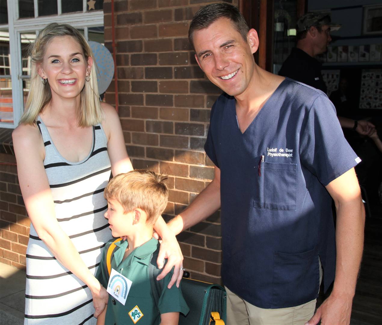 Ilse en Ludolf de Beer het hul seun, Kaleb, voor die klaskamer gegroet waar hy vanjaar gr. 1 aan die Laerskool Newton in KImberley gaan aanpak. Kaleb wil ? brandweerman word.