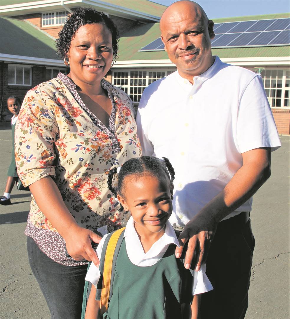 Pa Keanan Scholtz en ma Merildene by Kian in die gr. 1-klaskamer by die Laerskool Newton in Kimberley. Kian beplan om eendag ‘n rockster te word.