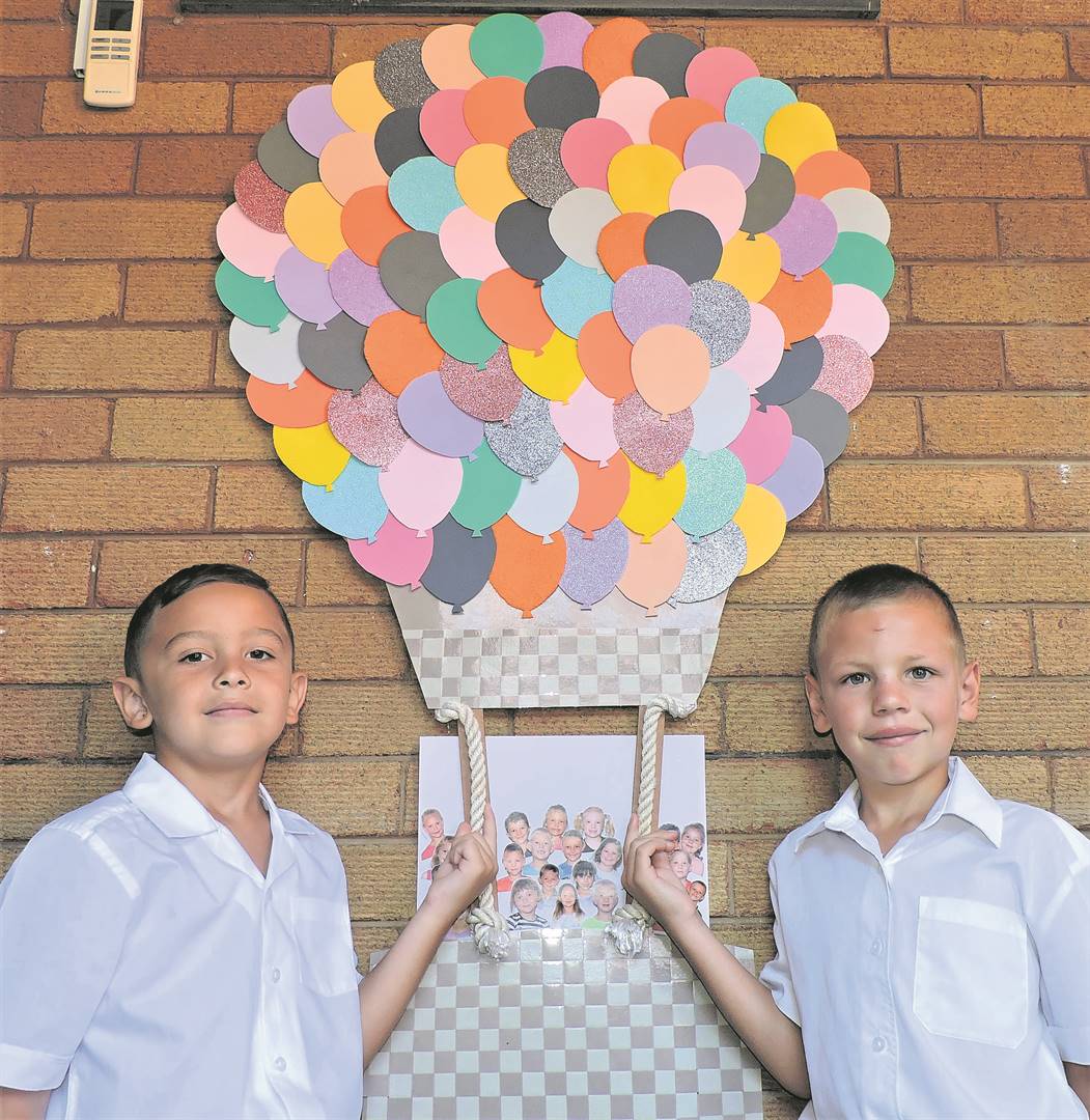 Faffa Vermeulen en Johno Coetzee is gereed vir die lugballonvaart deur gr. 1 aan die Laerskool Eureka in Kimberley. Johno sê hy wil “alles” in die skool leer.