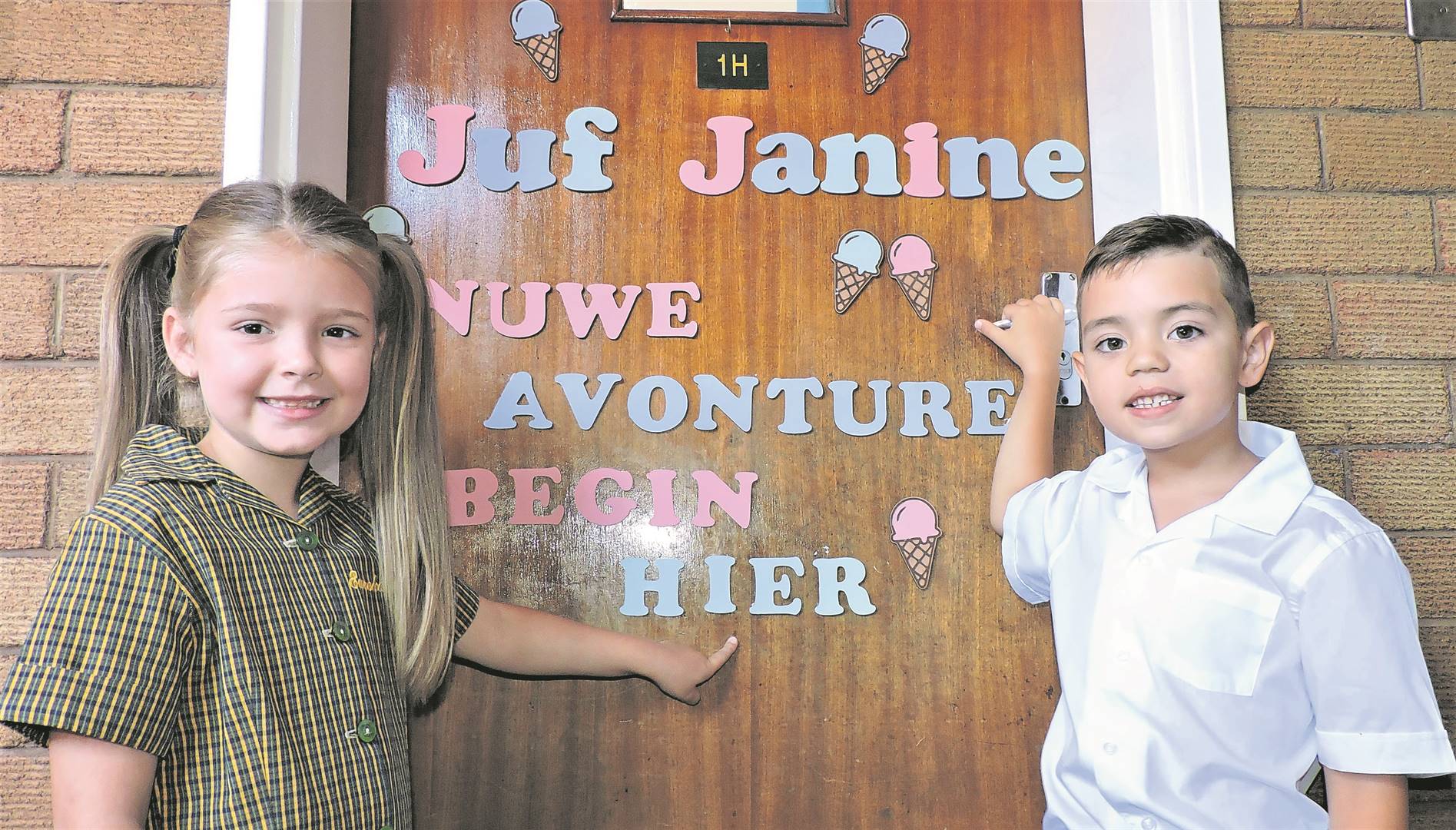 Diamé Fourie en Liam Robbetze kan nie wag om die deur na leeravonture by juf. Janine de Villers se klas by die Laerskool Eureka in Kimberley oop te maak nie.