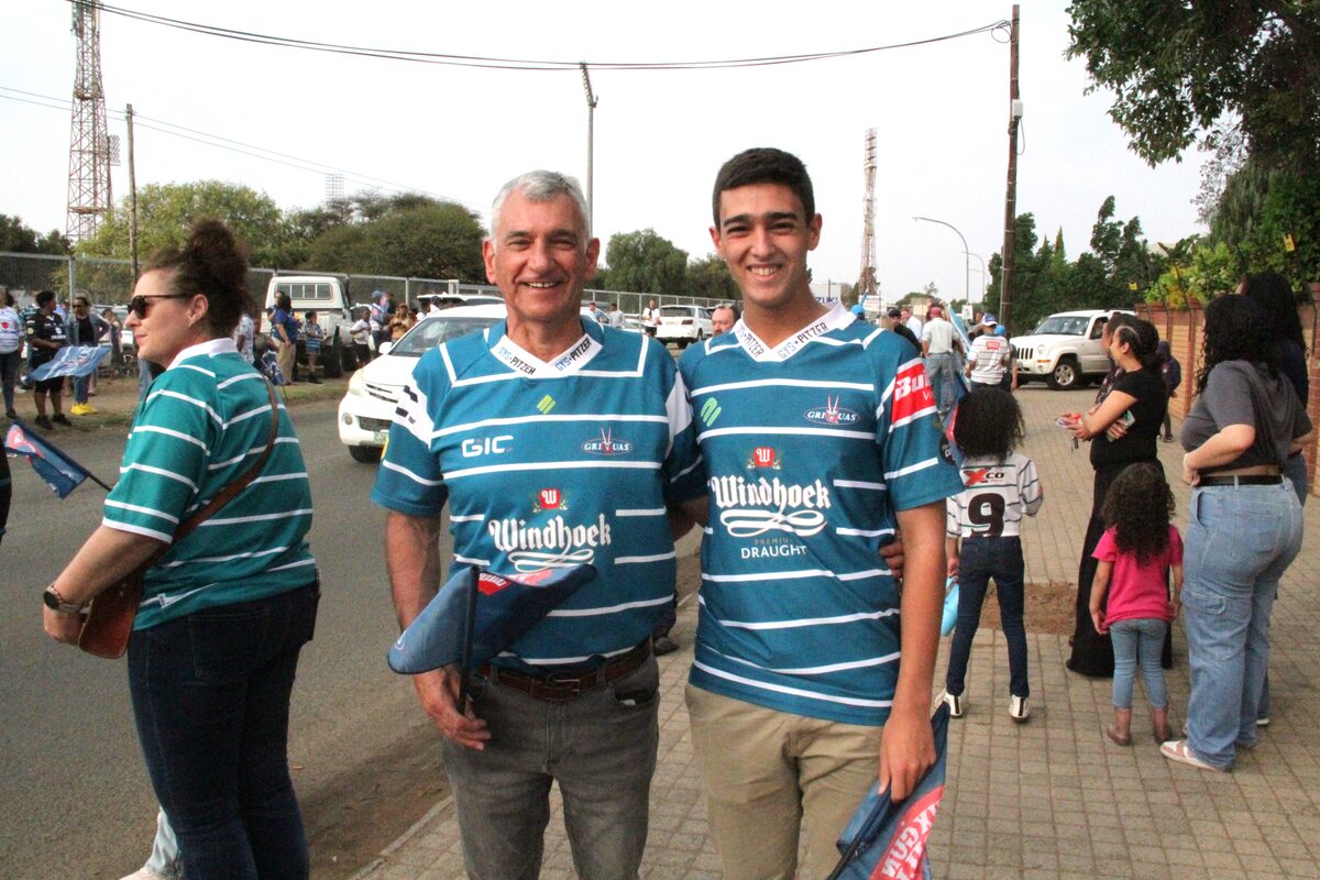Louis Bothma en sy seun, Louis, het van Bloemfontein gery om die Griekwas as Curriebeker kampioene te verwelkom. Louis jr, wat die Griekwas se bewonderaars-bladsy op Instagram bedryf, het onderhoude gedoen en foto’s geneem. Foto: Charné Kemp