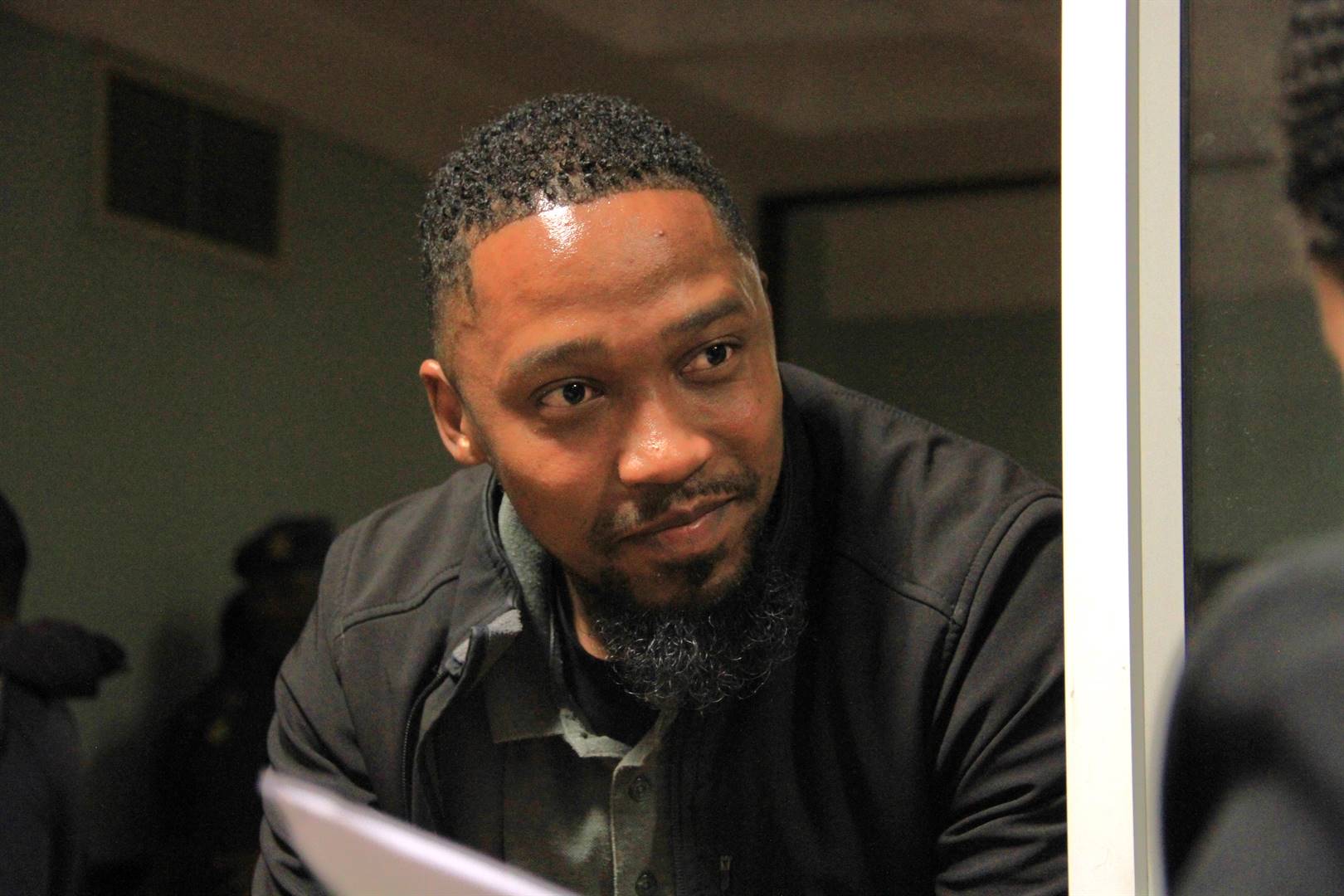 Henderson het virtueel vanuit die gevangenis op ’n TV-skerm in die hofsaal verskyn.