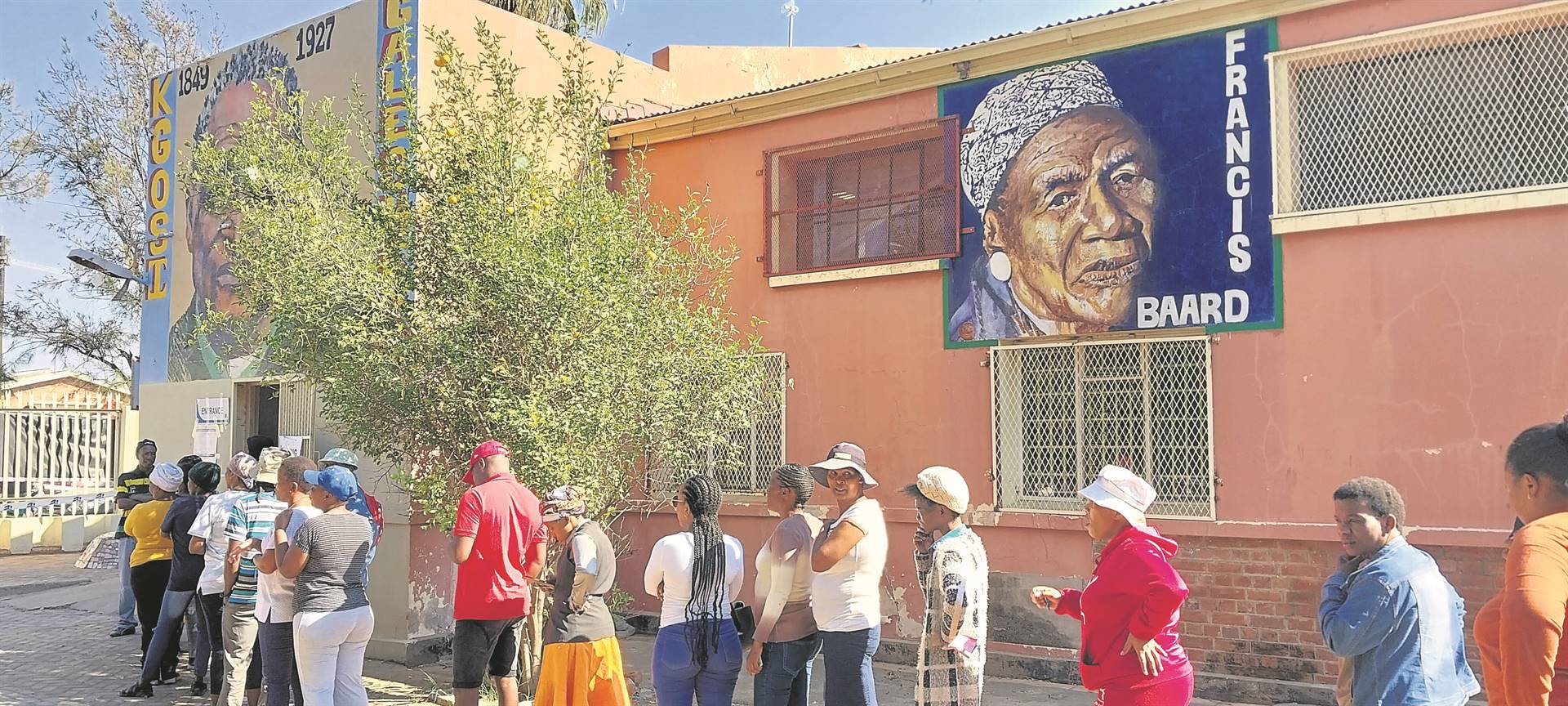’n Gemoedelike atmosfeer heers by die stemlokaal Seochoareng Big Shant Witdam in Galeshewe, Kimberley.