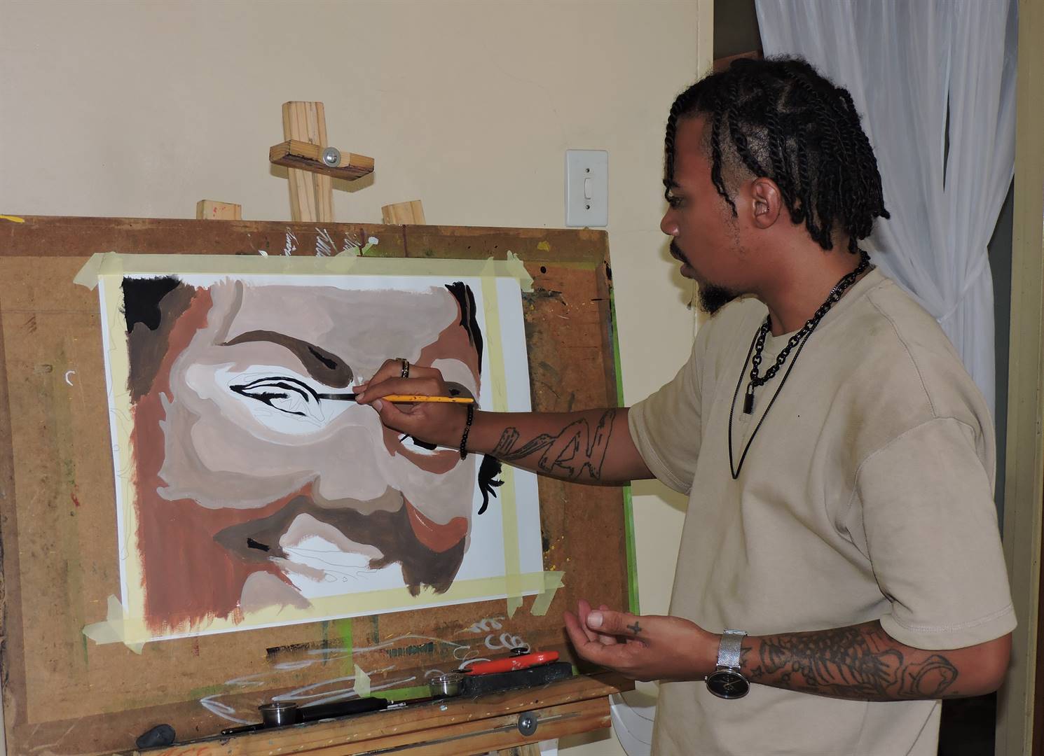 After his first exposure to an art exhibition abroad – last year in London – this 27-year-old artist from Roodepan in Kimberley had inspiration anew to promote his culture and enhance his style.