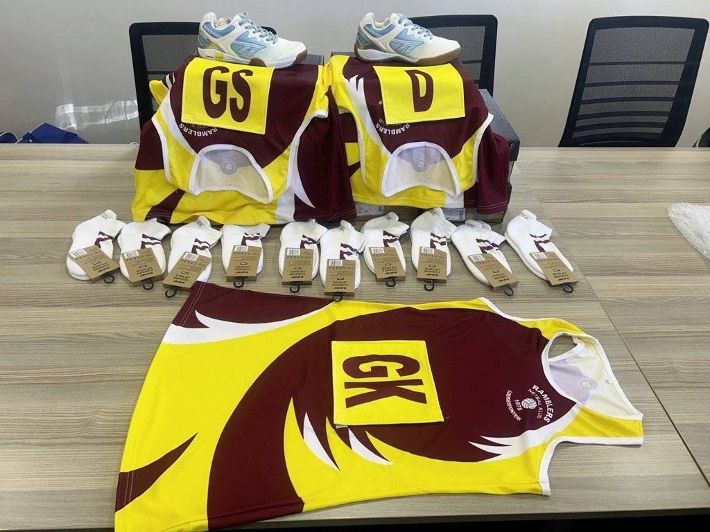 ’n Volledige netbaluitrusting is aan elke lid van die netbalspan gegee.