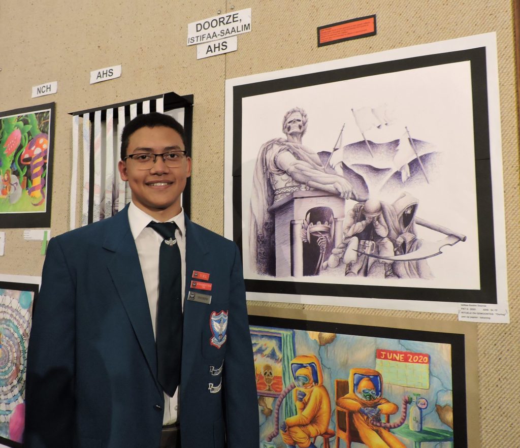 Exploring themes such as “reflection”, “then and now”, “rituals”, “place”, “time”, “identity”, “protest art” and “scars in society”, each artwork tells its own unique story. Liebenberg said it is always inspiring to see how these different topics are interpreted by young minds.
