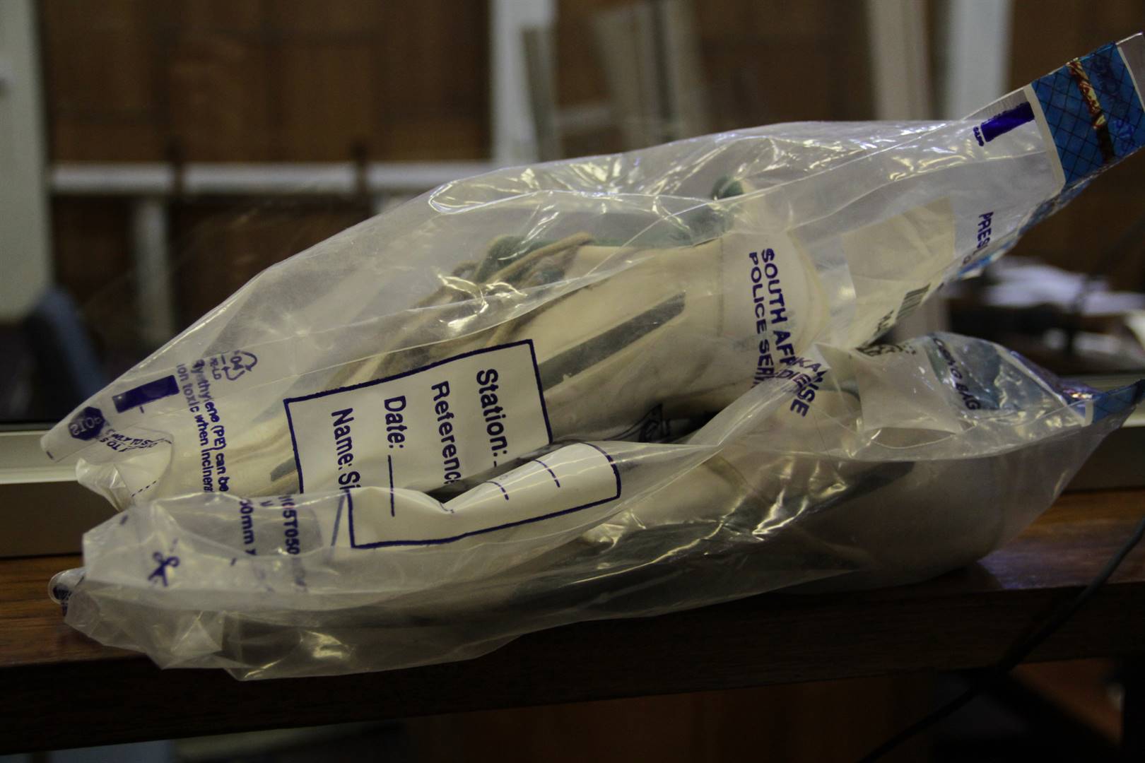 Adv. Themba Diba het namens Motlalentwa Qhautse aangevoer die betrokke tekkies behoort nie aan hom nie, en dat hy ’n nr. 7-skoen dra. ’n Ander man wat aanvanklik in hegtenis geneem is, dra ’n nr. 6-skoen. Regter Lawrence Lever het versoek dat die bewysstuksakke waarin die tekkies is in die regsverteenwoordigers se teenwoordigheid oopgemaak word sodat die grootte bepaal kan word.