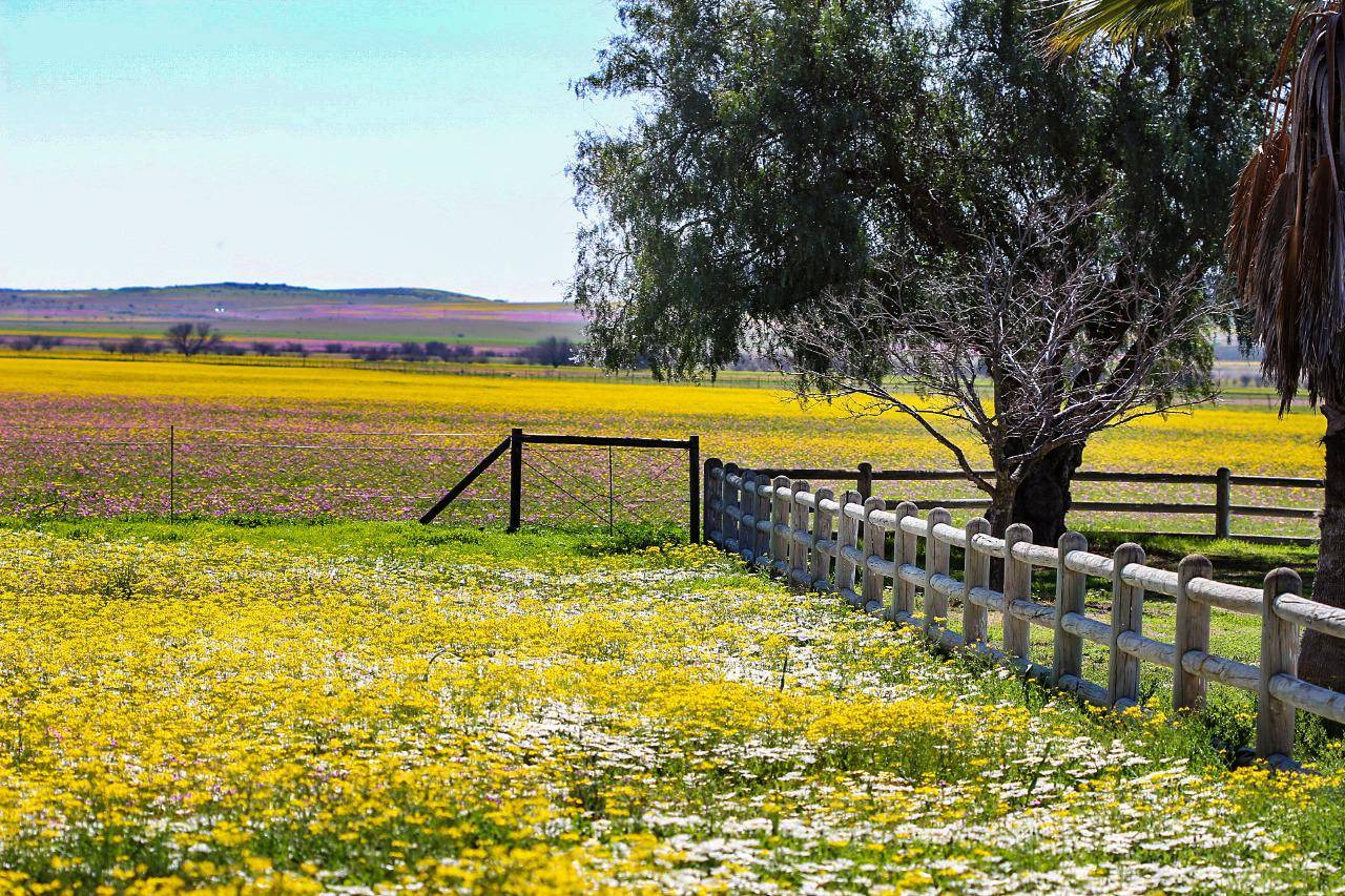 Die Namakwaland het haar mooiste bont blomrok in baie jare aangetrek. So ver soos die oog kan sien, staan die rooi fluweelblomme, katsterte, sporries, gousblomme en vele ander. Foto: Jeanette Borghesi