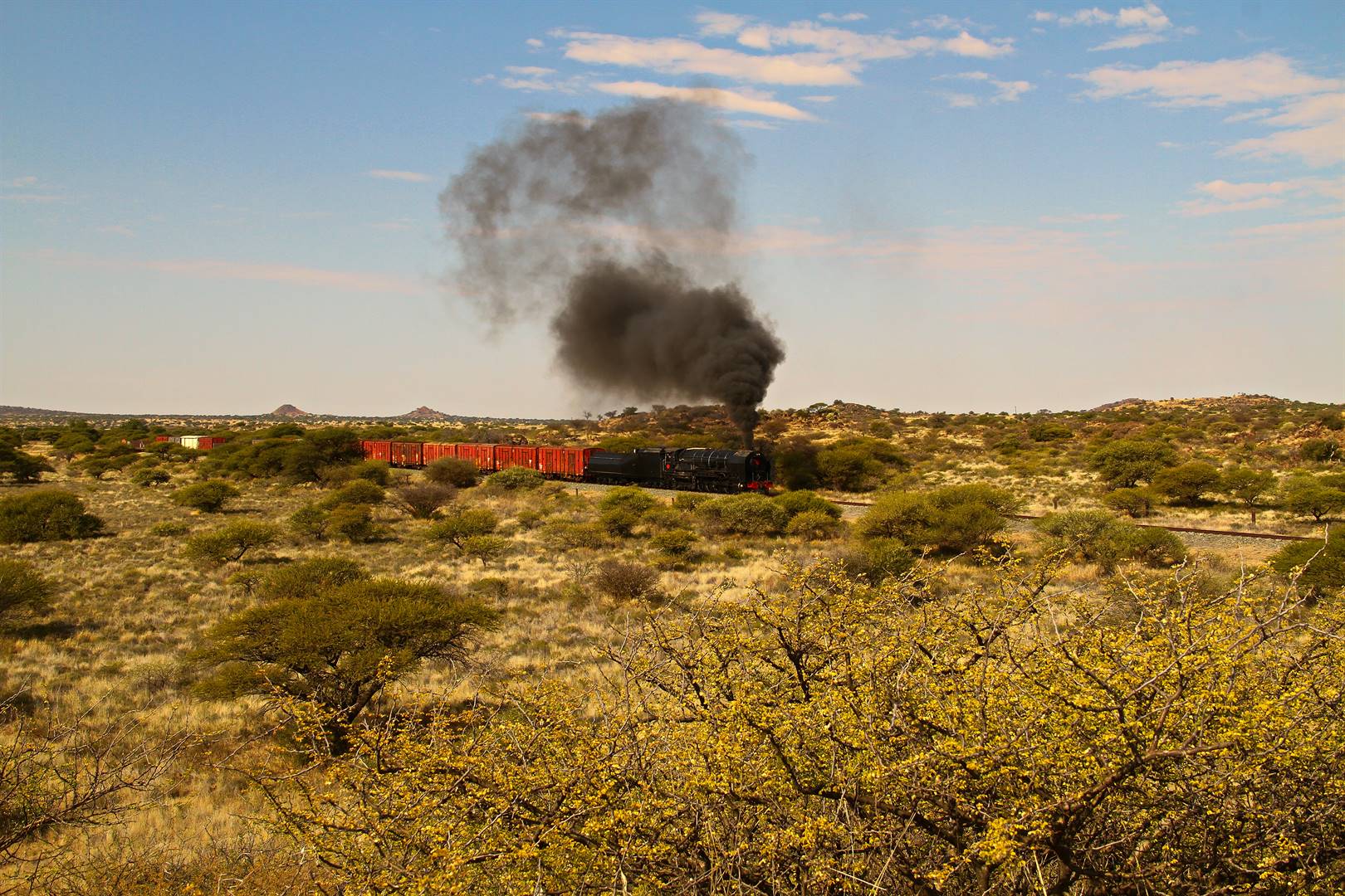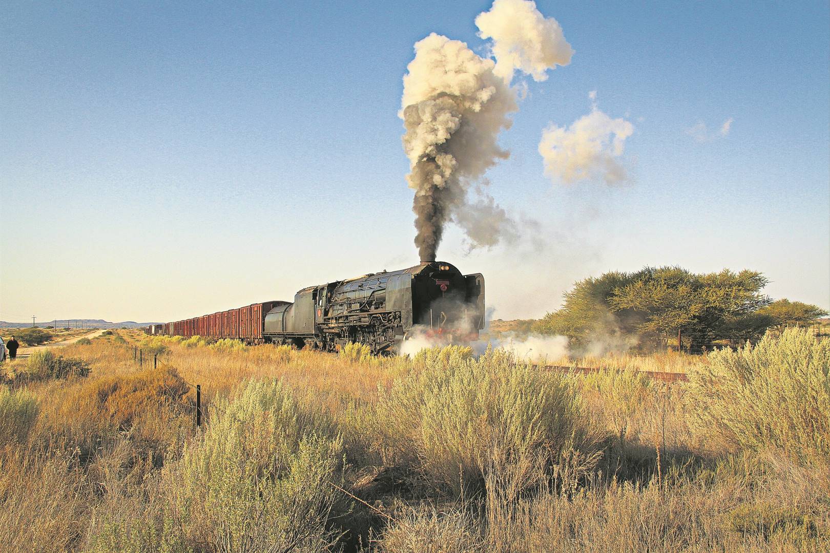 Some motorists did a doubletake, not believing their eyes, whilst a group of 80 foreign steam locomotive photographers could not stop capturing different vast Karoo landscapes with the locomotive billowing smoke and steam from its chimney, pulling freight wagons.