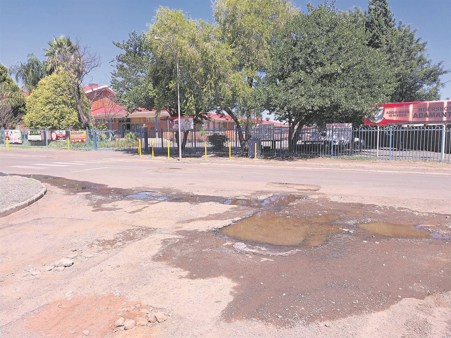 Slaggate en half herstelde slaggate om skole in Hadisonpark en New Park in Kimberley wek kommer oor padveiligheid in strate waar daar gewoonlik swaar verkeer is.