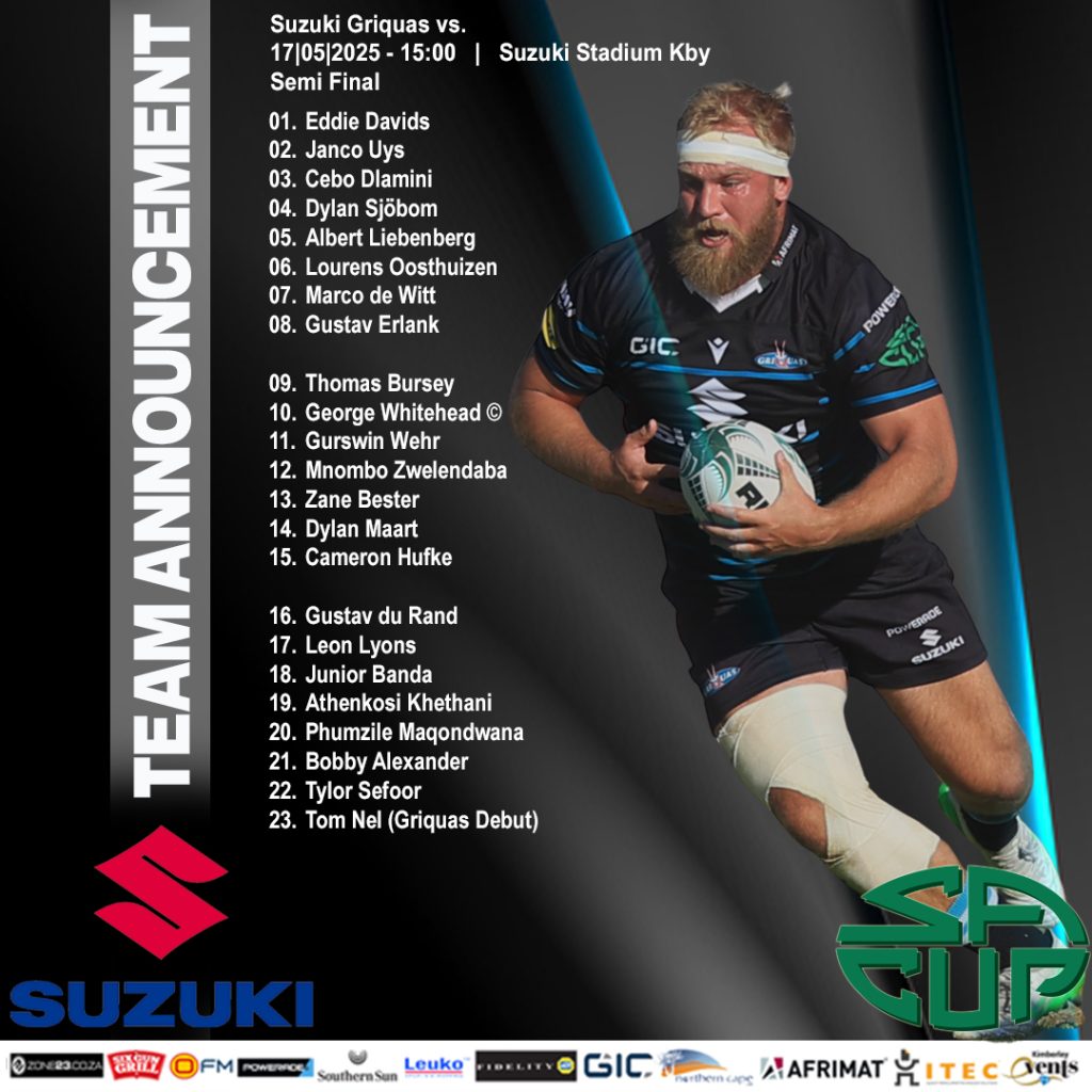 Saterdag 17 Mei ontmoet die Suzuki Griekwas en die Toyota Cheetahs mekaar weer op die Poubloues se tuisveld in Kimberley vir die halfeindstryd van die SA Beker-reeks.