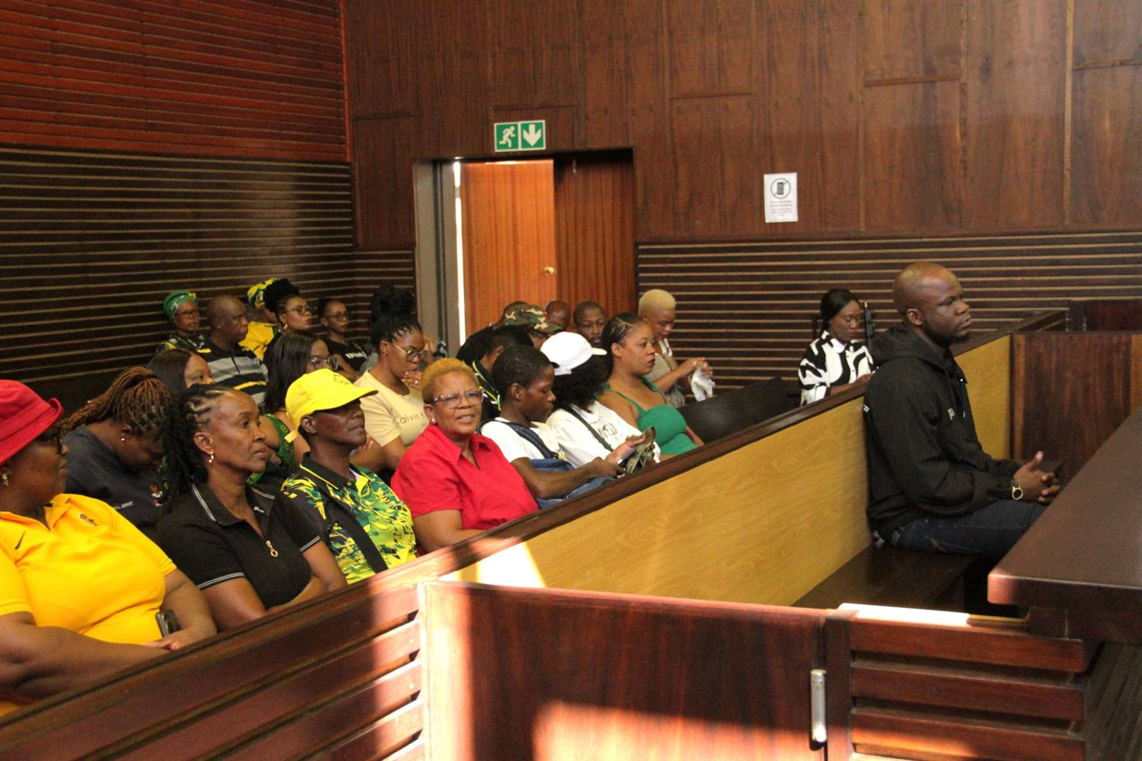 Die hofbanke was vol met familielede van die slagoffers en die beskuldigde, asook gemeenskapsaktiviste teen geweld teen vroue en kinders.