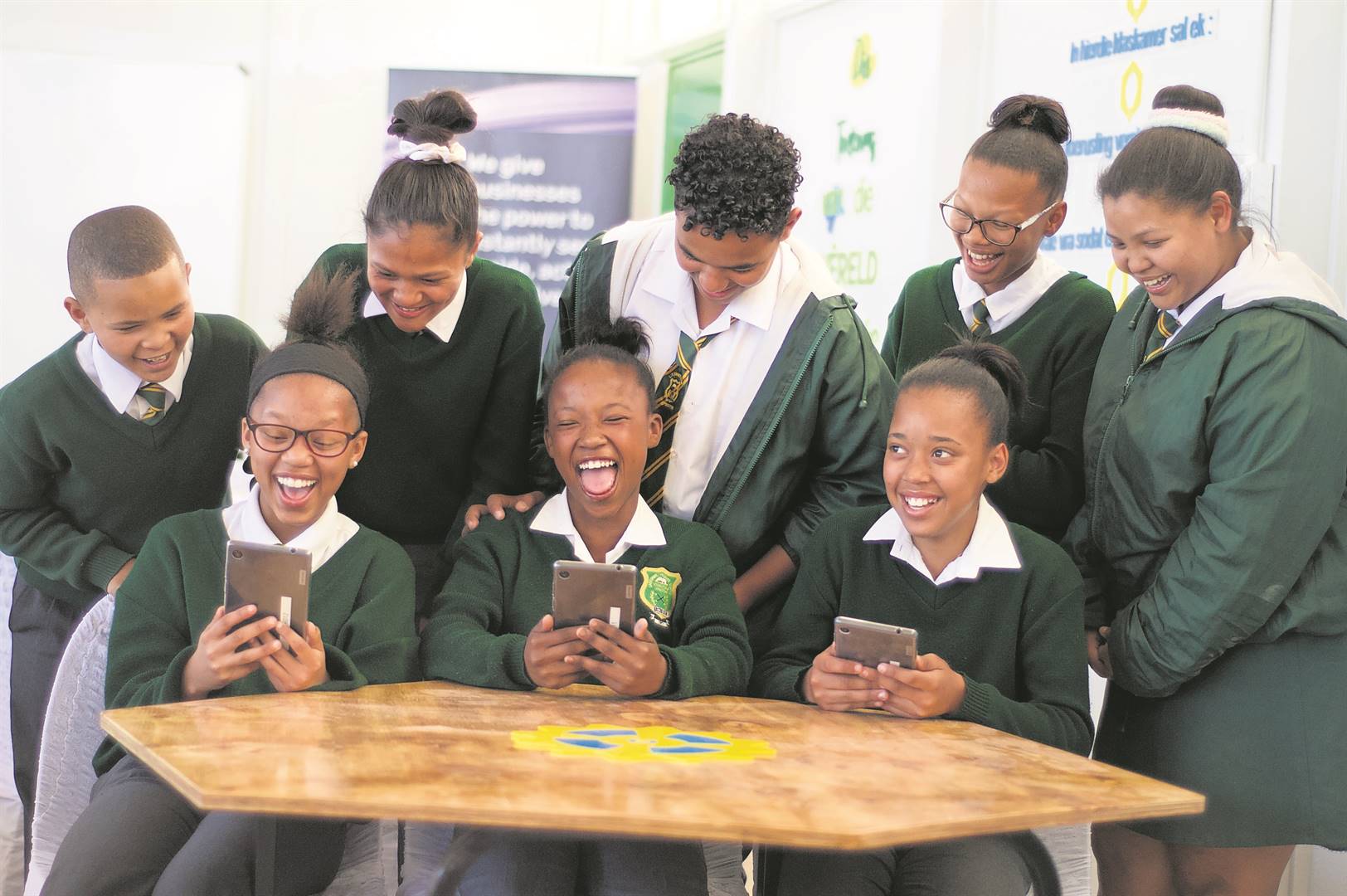 A Science, Technology, Robotics, Engineering, Aerospace and Mathematics (Stream) laboratory was launched on 22 September at the Vooruitsig Intermediate School in Upington. This facility by the Sakhikamva Foundation, in partnership with Software AG, can accommodate 40 learners. Here learners and teachers can enjoy new opportunities that the fully equipped Fourth Industrial Revolution classroom brings ahead of the new curriculum changes in 2023. The internet-connected lab is equipped with tablets and drones, and includes Artificial Intelligence (AI), robotics and app development software. At the launch are from the left, front: Veranique Jonkerd, Nobe Colette and Angela-Grace Thomson