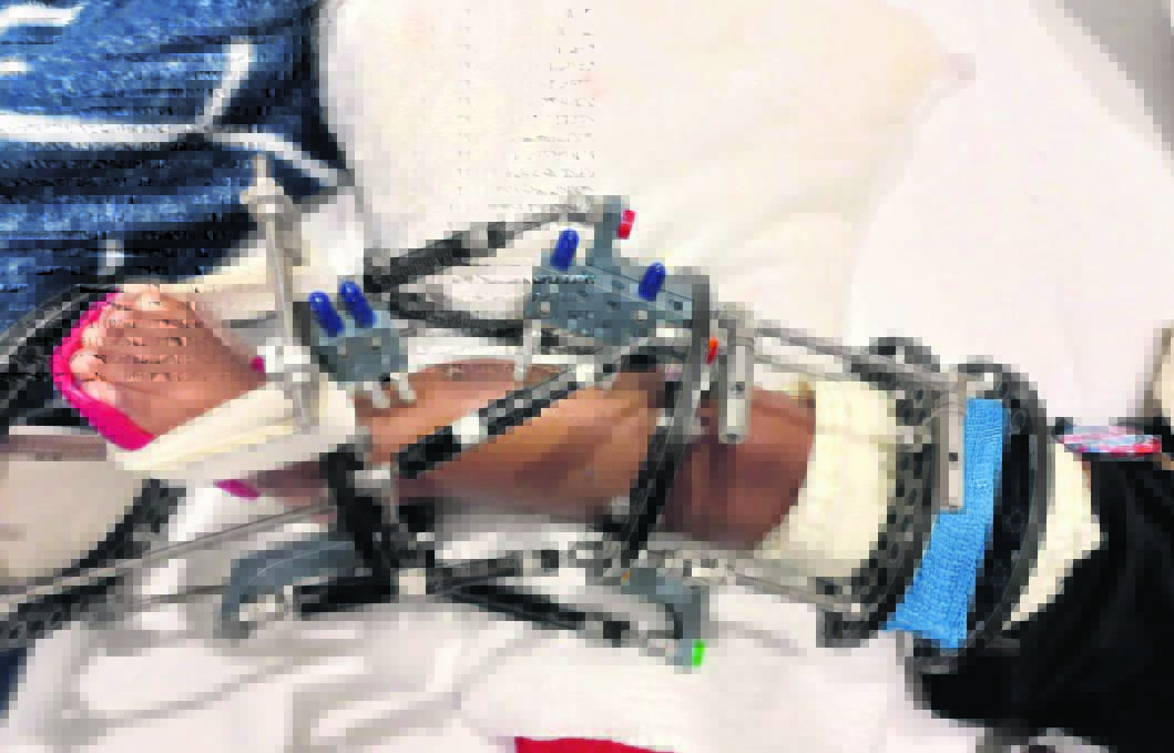 The fixator was fitted to Phetogo’s leg after the first surgery in America on 5 May.