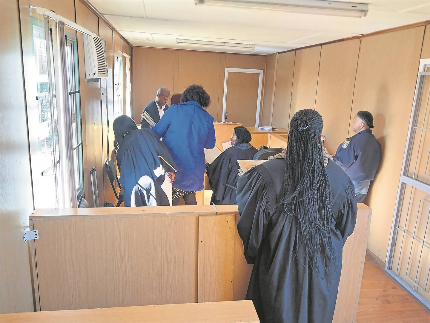 Intussen sê Victor Phala, woordvoerder vir die departement van justisie en konstitusionele ontwikkeling, dat alle hofbedrywighede by die polisiekantoor in opslaangeboue plaasvind.
