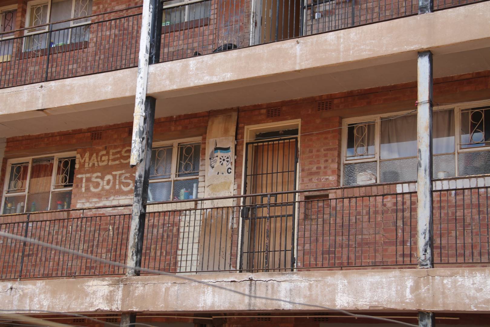 Buite die gebou wys hy na stukkende balkonrelings, verbrokkelende beton waar ’n vrou ’n paar jaar gelede deur ’n vallende stuk beton beseer is, plekke waar pilare oorhel, betonplafonne uitsak en lewendige elektriese drade ontbloot, stukkende dreine en afvoerpype, ruitlose vensters en vergete posbusse. Die vurkheining word stuk-stuk gesteel en groen rioolwater vloei by mangate uit. Graffiti ontsier die buitemure.