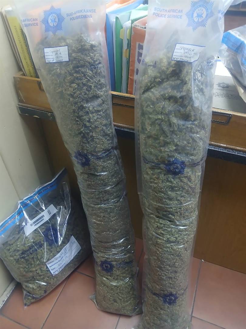 The male driver, aged 32, and his male passenger, aged 26, were arrested for dealing in dagga and will appear in the Springbok Magistrates Court soon.