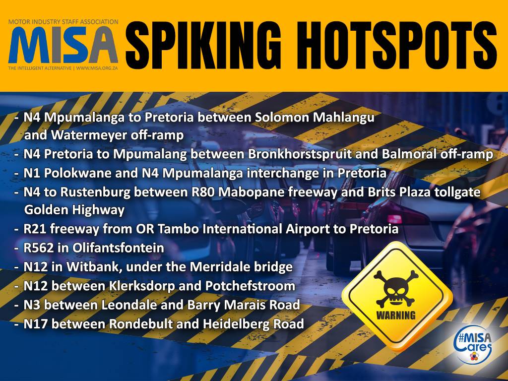 Incidents of vehicle spiking are on the increase, and people travelling in especially Gauteng need to be aware of this opportunistic crime.