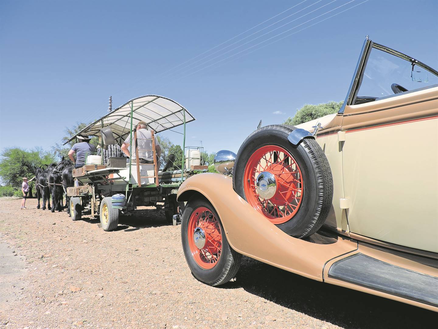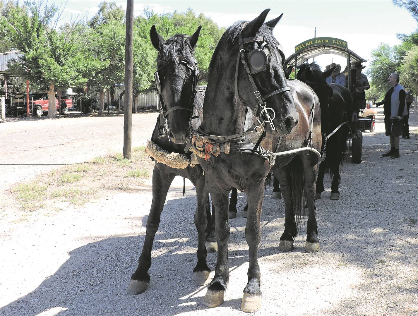 Teen die tyd dat kerkgangers uit die kerk gekom het, het Coetzer se wa met ses perde van die Vreugde Vlaamperd-stoetery, vergesel deur die 1933 Chevrolet Eagle Roadster van Kobie Herselman met sy perde onder die skitterblink enjinkap, reeds die dorpenaars se aandag getrek.