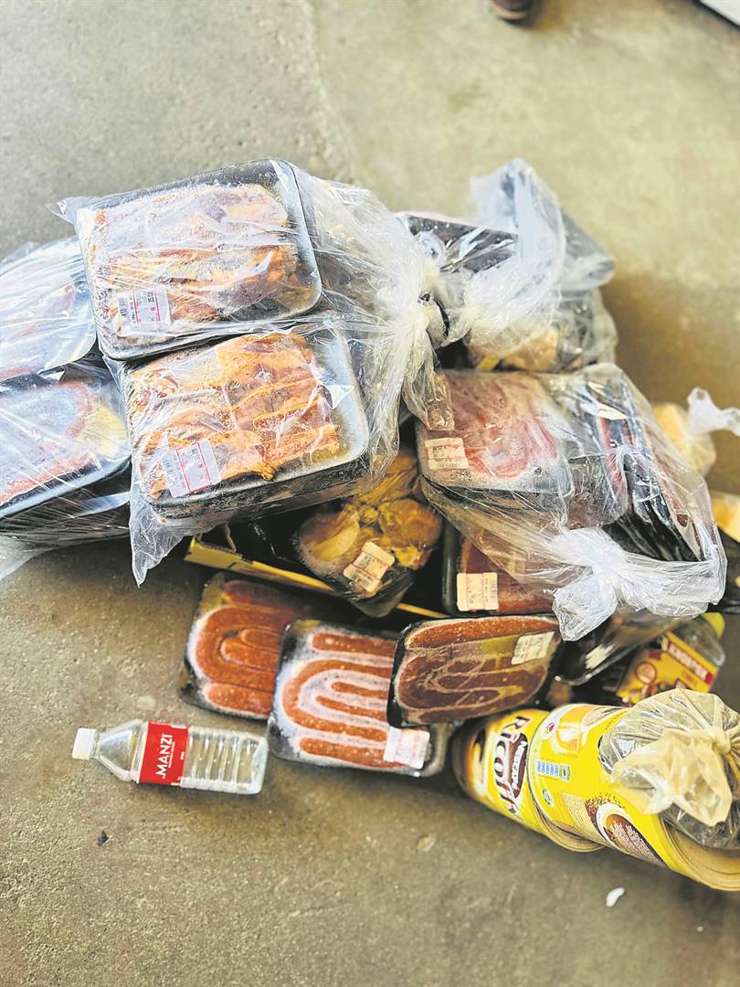 Daar is beslag gelê op groot hoeveelhede voedsel en ander artikels, insluitend voedsel wat ’n vervaldatum bereik het, beskadigde blikkies kos en vrot groente en vrugte.
