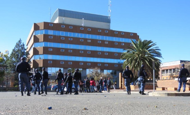 werkers gaan Vrydagoggend voor die stadsaal vergader en na die burgersentrum