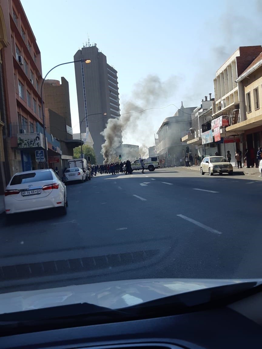vakbond het Donderdag buitebande voor die stadsaal aan die brand gesteek en