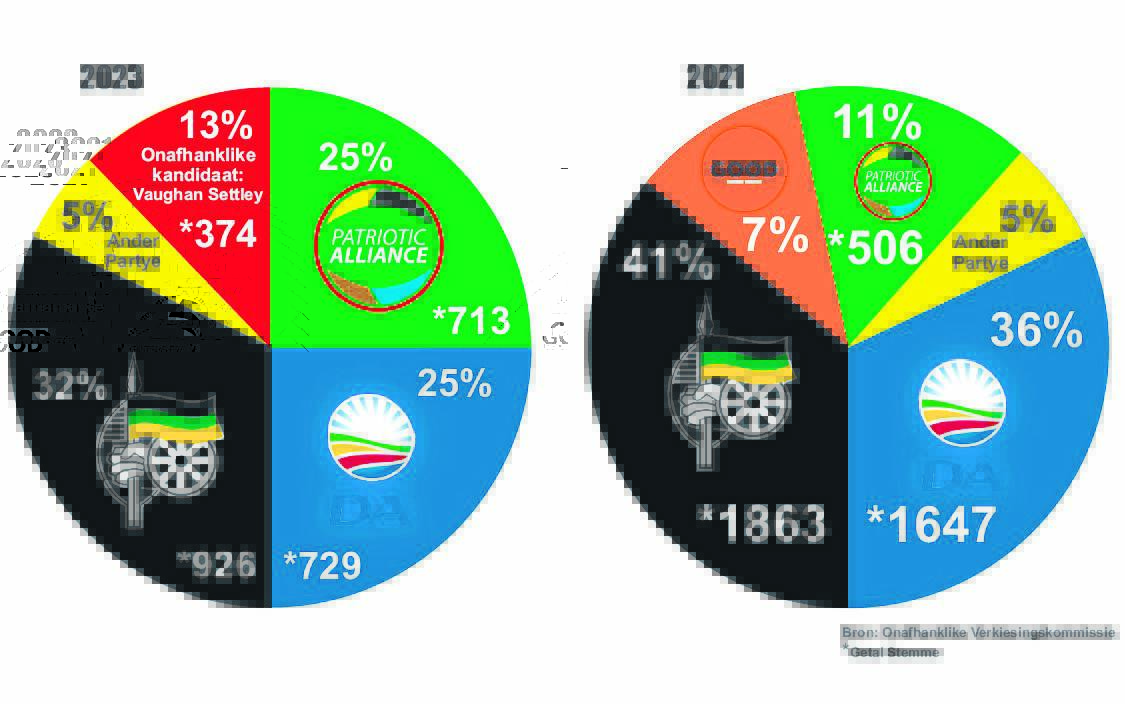 Die ANC se steun het van 41% in die 2021 plaaslike verkiesing tot 32% afgeneem, terwyl die PA se steun van 11% na 25% toegeneem het. Die DA het 25% teenoor sy vorige 36% behaal. Vaughan Settley, ’n onafhanklike kandidaat en vorige ANC-raadslid, het 13% behaal. Good wat in die 2021 verkiesing 13% gehad het, het nie deelgeneem nie.