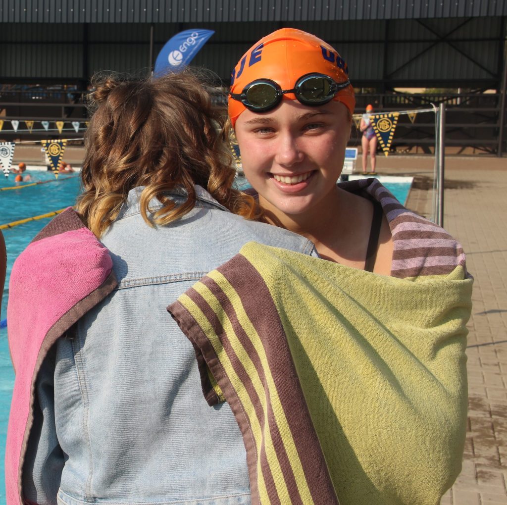 In stede van ‘n nommer op die skouer, het die meisies wat deelgeneem het elk ‘n naam van ‘n meisie op haar skouer geskryf gehad – elke leerling kon vanjaar die naam van ‘n tienermeisie van een van Engo se jeugsorgsentrums trek en so vir ‘n spesifieke meisie swem. Die leerlinge het ook vir die meisies elk ‘n geskenkie gegee.