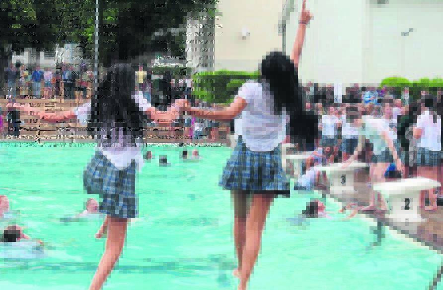 The class of 2021 of Paarl Girls’ High School was not deterred by the chilly weather on Friday to celebrate their last school day in the traditional swimming pool plunge at the school.